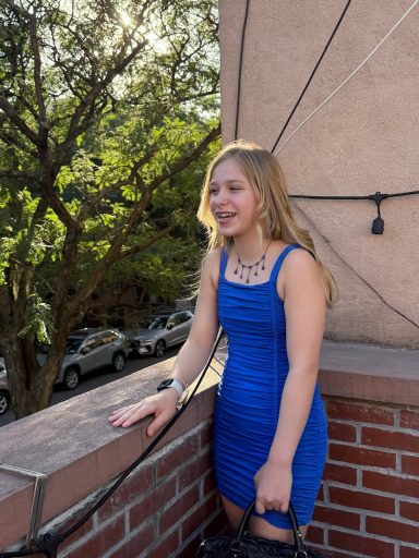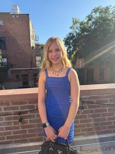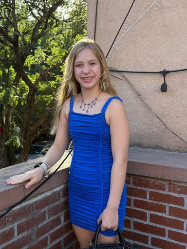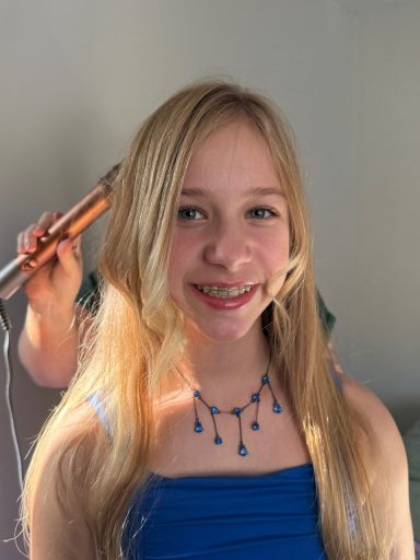 Je note que lorsqu’Ellie est montée se doucher, elle ressemblait à une sportive de 12 ans qui venait de faire 2 heures d’entrainement et elle est magiquement redescendue comme une jeune fille de 20 ans; incroyable! Elle était magnifique notre poupée. Tata Liz l’a aidée à boucler un peu ses cheveux (tata for the win!); je lui avait mis un peu de mon mascara et de mon gloss et elle était prête et toute belle pour sa sortie notre grande fille!