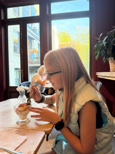 De retour à la maison, j’ai déposé Mila avant d’aller récupérer Maisie. Nous en avons profité pour faire quelques courses toutes les deux et sur le chemin du retour, nous nous sommes arrêtées prendre une glace / café; c’était totalement spontané et j’ai bien aimé parce qu’au moment de franchir la porte du café Maisie m’a dit qu’elle était contente d’y rentrer parce que l’on pourrait papoter (chose que nous faisions déjà sur le chemin), donc c’est toujours bon à prendre! Nous avons passé un délicieux moment toutes les deux. En rentrant, nous avons profité d’un bon barbecue préparé par papa; diner parfait pour terminer cette belle journée!