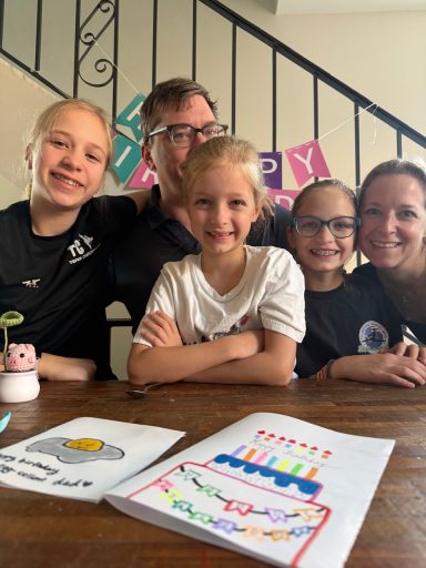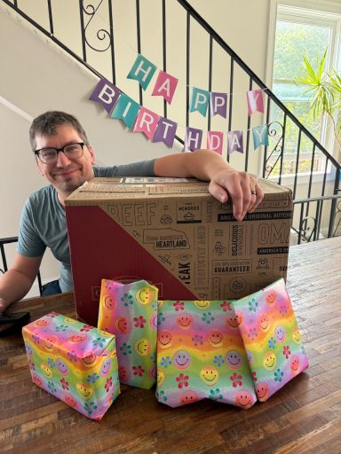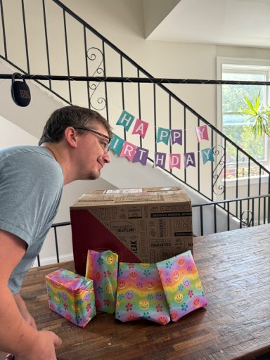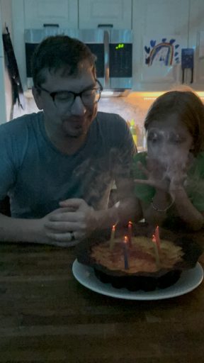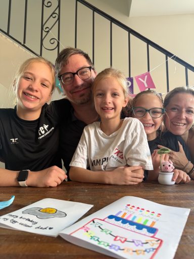 Une fois les filles rentrées nous avons ouvert les cadeaux et soufflé les bougies; encore une fois, Chris était bien entouré et c’était bien mérité!
