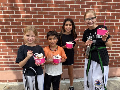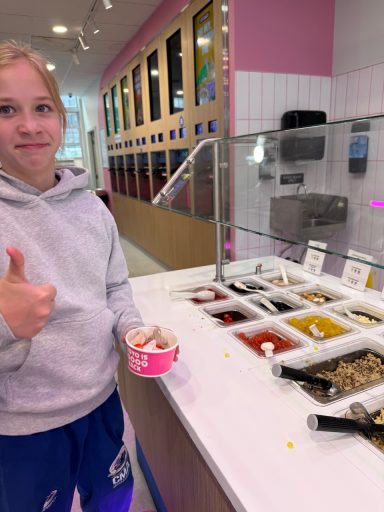 A la fin des cours, deux amis (des frères et soeurs) du taekwondo sont venus jouer à la maison. Evidemment, nous sommes passés par la case yaourts glacés; on en profite tant qu’il est encore temps parce que ce n’est pas quand il va faire -20 que les filles iront manger des glaces!